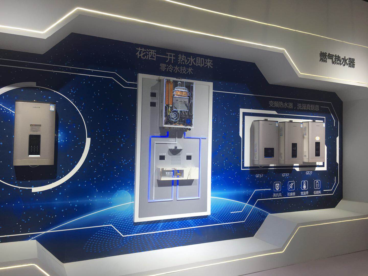 在熱水器展示區(qū),還有高抗風(fēng)、超靜音的智適應(yīng)G系列變頻恒溫燃?xì)鉄崴?,“人來即斷電,安全看得見”的智能安全電熱水器等產(chǎn)品......