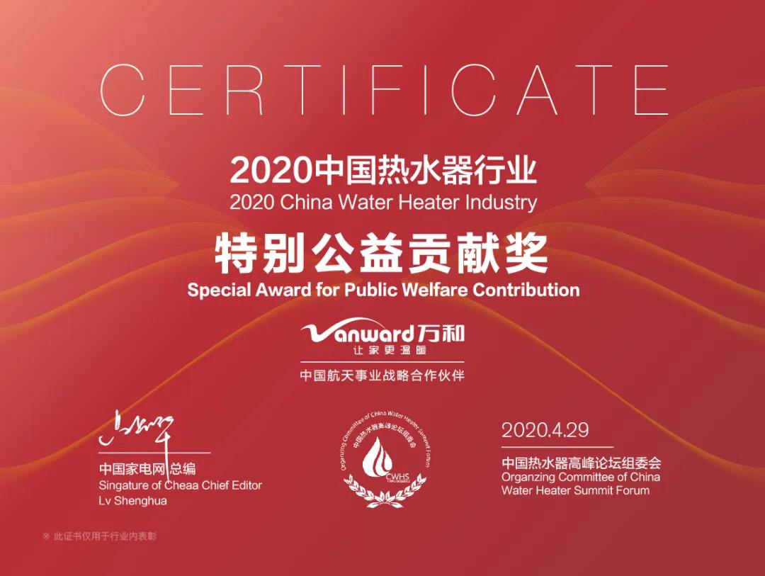 共沐未來——2020中國熱水器行業(yè)高峰論壇”在北京以“線下實(shí)景+遠(yuǎn)程連線+多平臺直播”的全新聯(lián)動方式舉行。在本次大會上,萬和獲得四項(xiàng)大獎(jiǎng),分別是2020中國熱水器行業(yè)先鋒品牌、2020中國熱水器行業(yè)特別公益貢獻(xiàn)獎(jiǎng)、萬和L2零冷水燃?xì)鉄崴鳙@“2020中國熱水器行業(yè)暢銷型號”、萬和JSQ30-S3W16智能恒溫零冷水熱水器獲“2020中國熱水器行業(yè)杰出渠道表現(xiàn)產(chǎn)品獎(jiǎng)”。