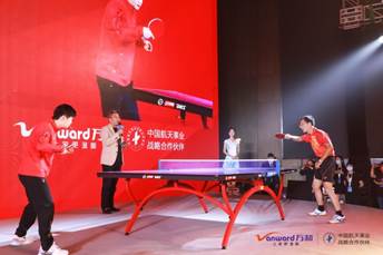 萬和集團(tuán)董事長盧楚隆與孫穎莎乒乓切磋