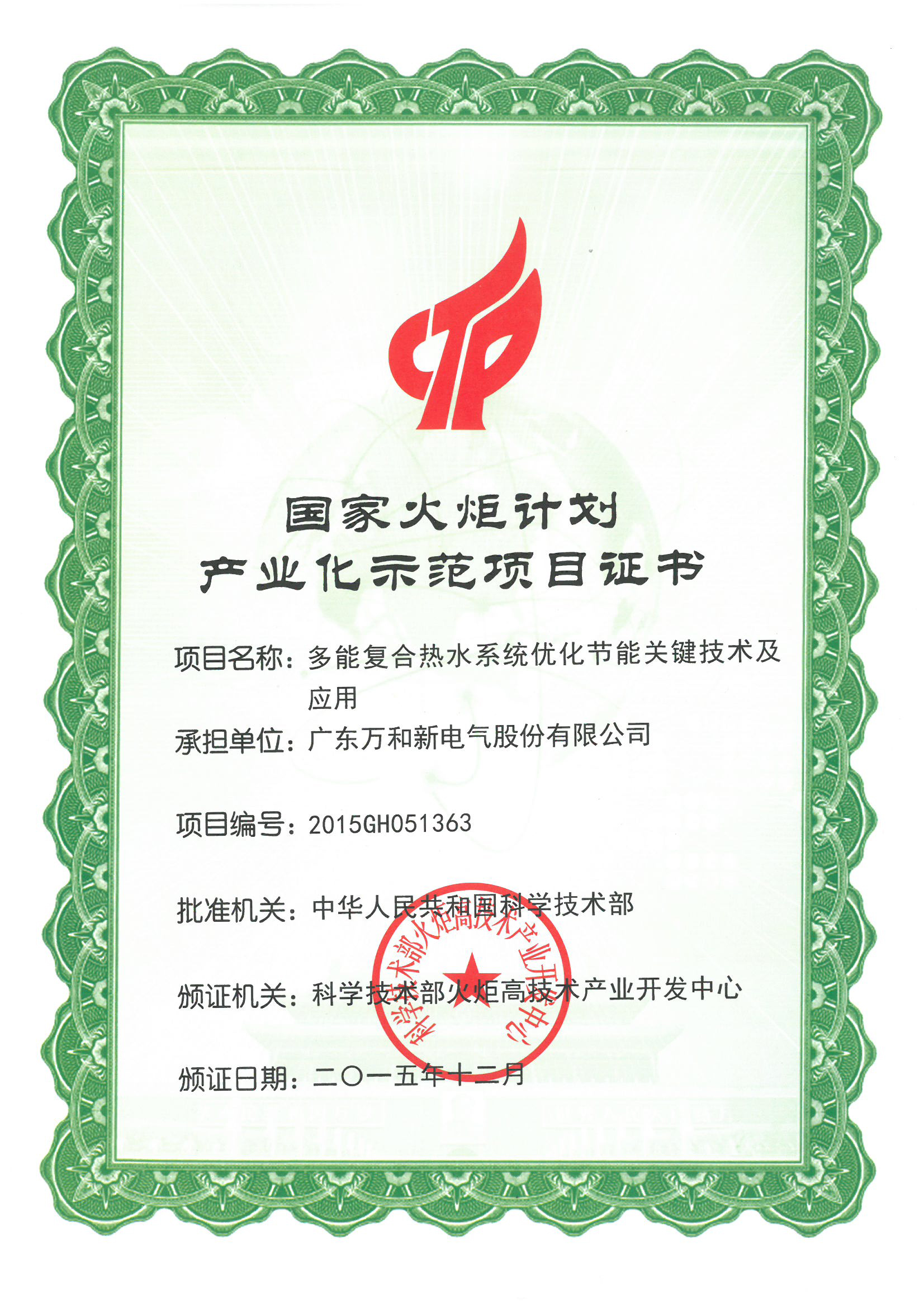 早在2015年5月,萬和“多能復(fù)合熱水系統(tǒng)優(yōu)化節(jié)能關(guān)鍵技術(shù)及應(yīng)用”項目就順利通過了由中國輕工業(yè)聯(lián)合會組織并主持的科技成果鑒定,與會專家組一致認(rèn)為,該項目整體技術(shù)水平達到國際先進水平。據(jù)了解,此項目屬節(jié)能環(huán)保技術(shù)領(lǐng)域,獲得了4件發(fā)明專利和4件實用新型專利,研制了一種太陽能加熱單元、空氣源熱泵加熱單元和燃?xì)饧訜釂卧菁壖訜醿?yōu)化節(jié)能的熱水系統(tǒng),通過這3個加熱單元復(fù)合或通過其中任何兩個加熱單元復(fù)合,提供一種環(huán)境條件和能源資源適應(yīng)范圍廣,節(jié)能、環(huán)保、經(jīng)濟的熱水設(shè)備,實現(xiàn)了節(jié)能和降低運行成本的目的。該熱水系統(tǒng)可提供舒適的熱水供應(yīng),以滿足廣大用戶生活或采暖需要。