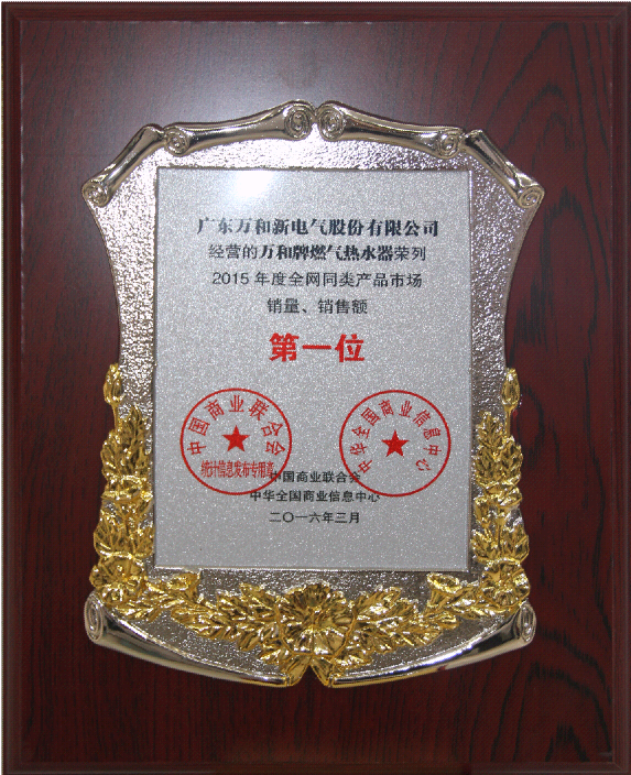 《全國大型零售企業(yè)暨消費品市場2015年度監(jiān)測報告》顯示,2015年燃氣熱水器銷售306344臺,其中萬和燃氣熱水器市場占有率11.12%,市場銷售份額16%,連續(xù)十二年市場綜合占有率第一。