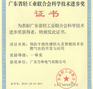 萬和預防干燒控火技術獲廣東輕工聯(lián)科技進步一等獎