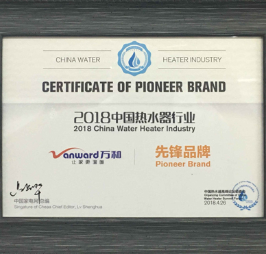 萬和榮膺 “2018中國熱水器行業(yè)先鋒品牌”